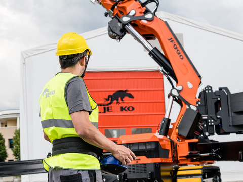 The beast in your jobsite. The JF990 knuckle boom crane combines the flexibility and power of an articulated crane boom with the compactness and versatility of a mini crawler crane. This advanced model – of a lifting capacity of up to 47,297 lb – stands out in the articulating crane market for its versatility, precision, and compact size.