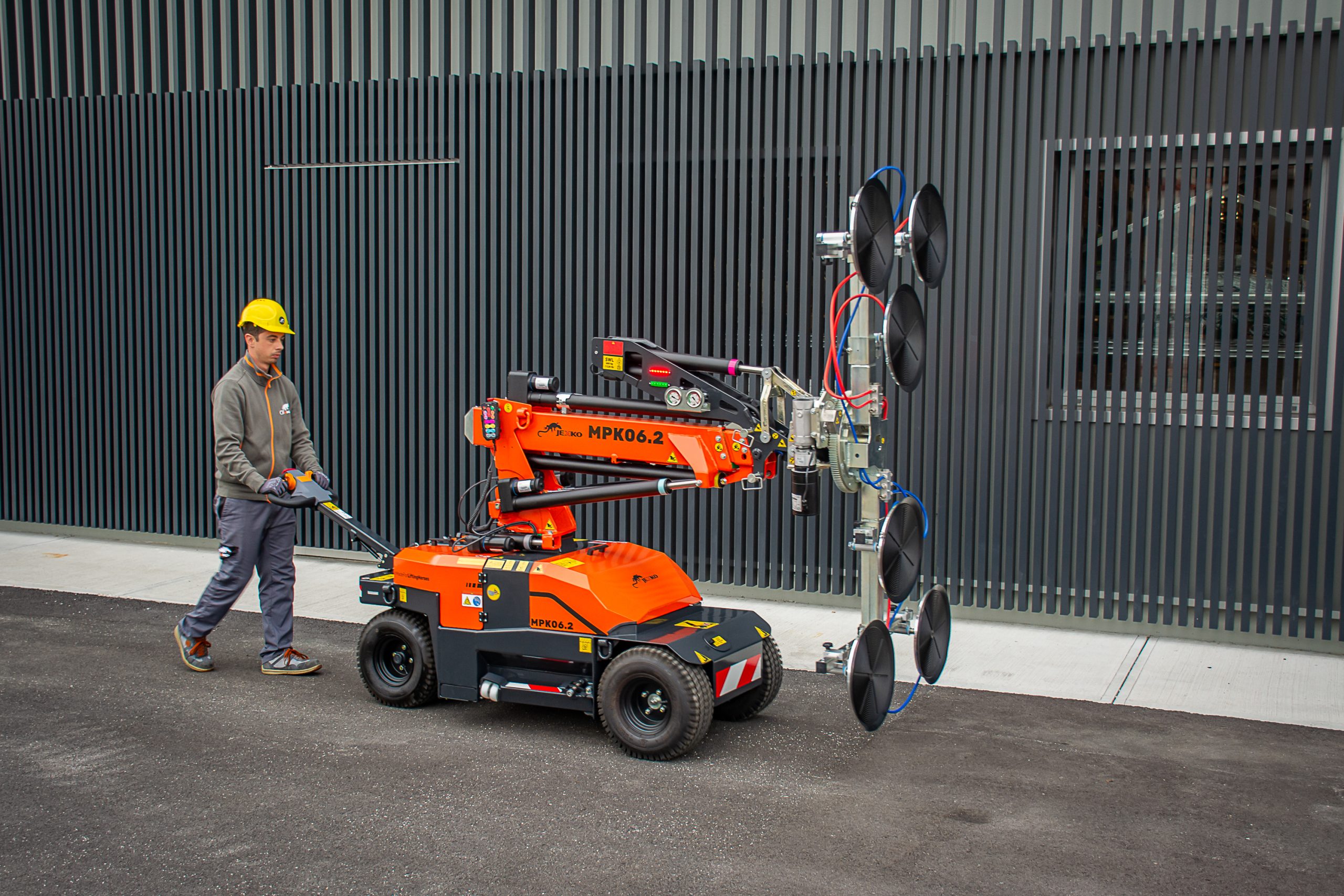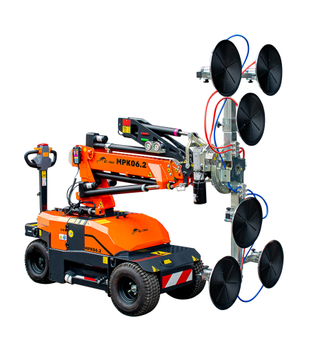 MPK06.2 is an electric 2in1 minipicker: a 1,320 lbs capacity glass handling robot and pick & carry crane all in one machine. The new improved vacuum manipulator with modular and customisable layout allows to easily position glass, marble, monopanels or smooth panels of any kind.