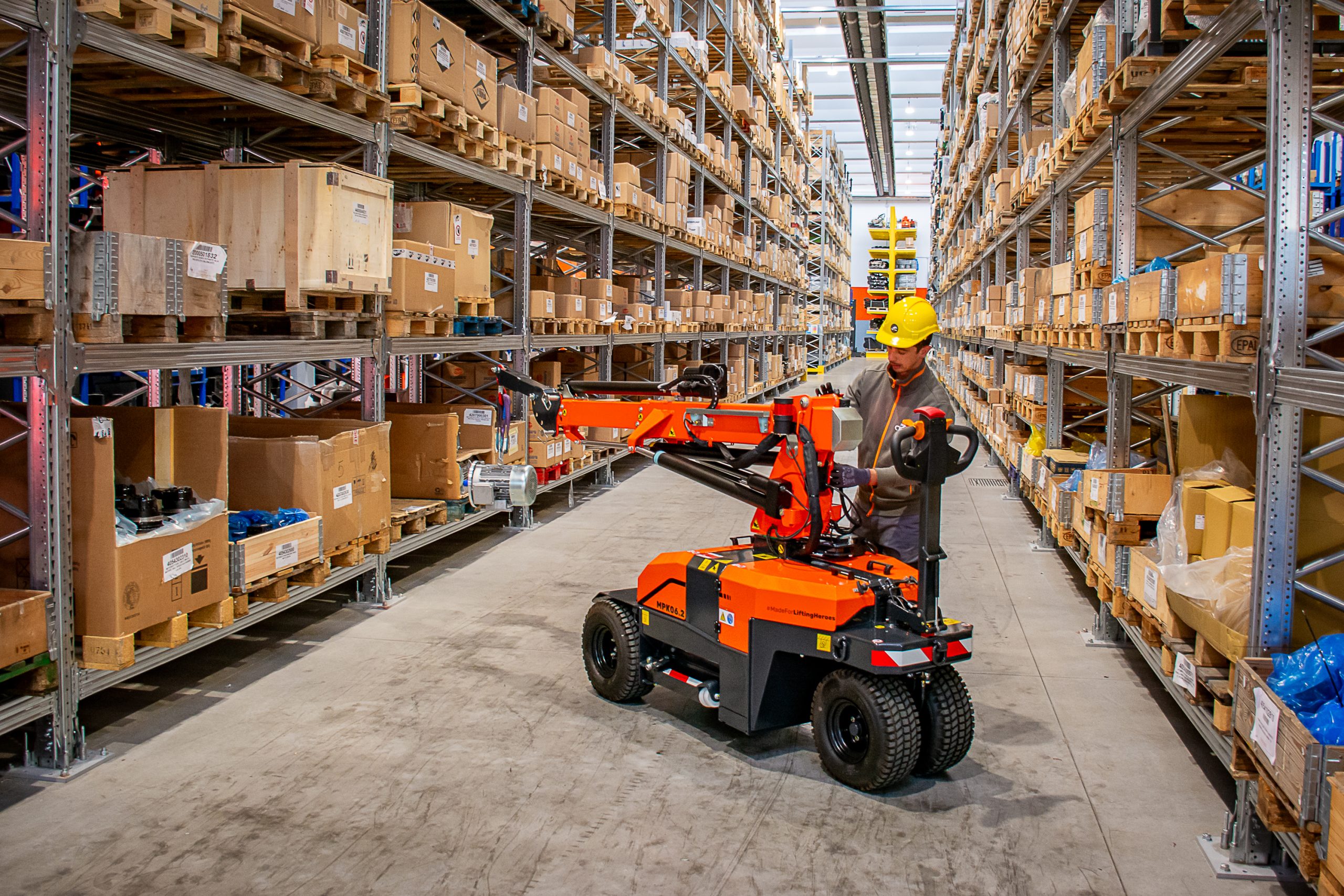 MPK06.2 is not only a glass installation robot! With hook and adjustable searcher hook, MPK06.2 is a 1,320 lbs pick & carry electric crane with a long-duration battery ideal for emission-free and noise-free indoor liftings.